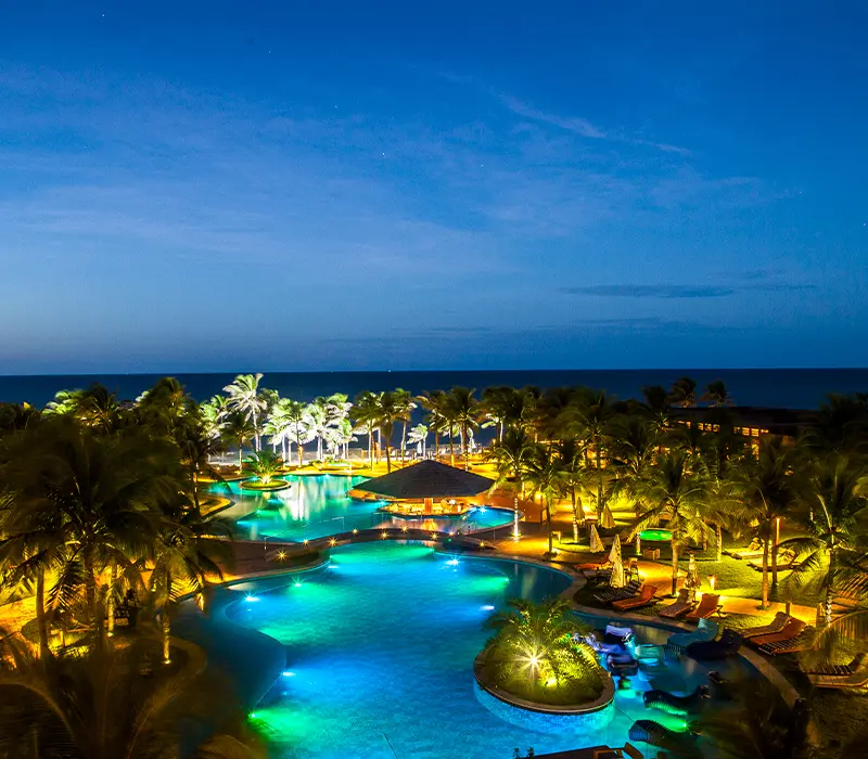Todos esses esplêndidos Resorts estão a aproximadamente 50 minutos de distância do Aeroporto Internacional de Fortaleza.