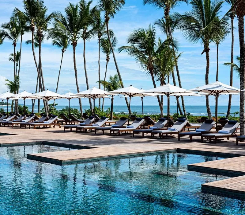 O Fasano Trancoso combina a sofisticação da marca Fasano com a rusticidade charmosa de Trancoso, oferecendo um refúgio de luxo com serviço impecável e uma praia praticamente privativa.