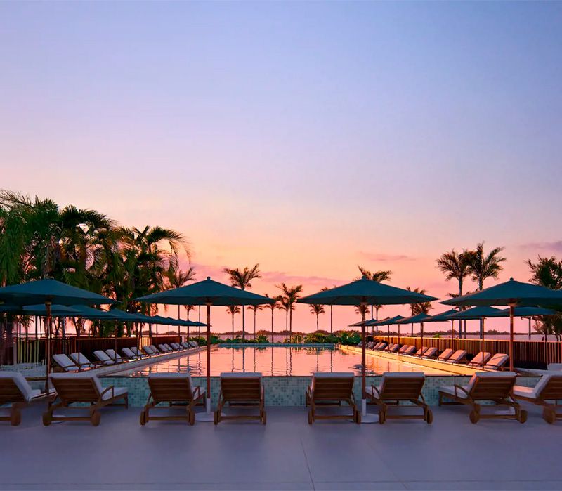 Três piscinas convidam ao relaxamento — sendo uma coberta aquecida — e o Satsanga Spa presente para tratamentos de bem-estar. Um espaço completo para quem quer recarregar ou manter o ritmo de atividades leves.