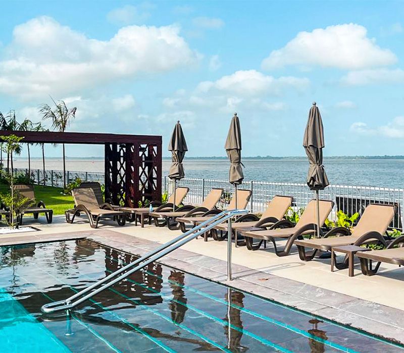 No coração da cidade de Belém, próxima à imponente Baía do Guajará, um cenário singular espera por você: a combinação da grandiosidade da floresta amazônica com a história vibrante do porto e dos armazéns históricos. O ar úmido carrega o frescor da vegetação tropical e o entardecer ganha tons dourados sobre os navios e manguezais. Uma pausa perfeita para quem deseja se conectar com a natureza, a cultura e a cidade — tudo em um só destino.